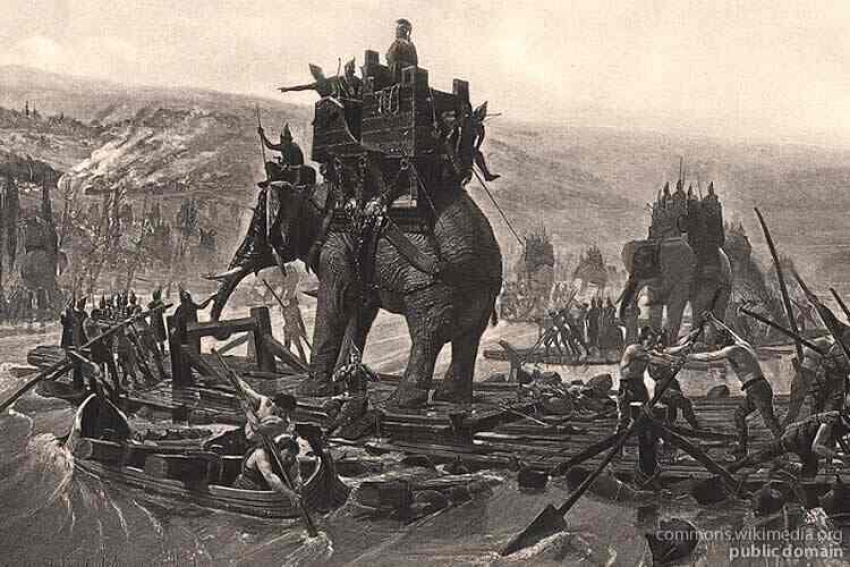 Античные историки — в первую очередь Полибий и Тит Ливий — писали, что в армии Ганнибала были боевые слоны, когда он пошел в поход на Рим через территории современных Франции и Испании.